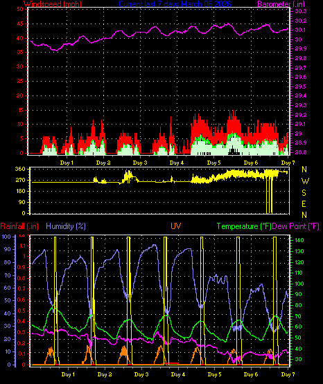 Maximum windspeed = 9.2 mph from 338°(NNW) on day 05 at time 13:36